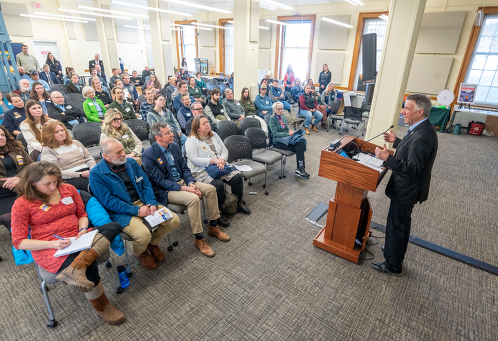In addition to remarks and testimony, the day included a series of “issue huddles” with advocates intended to help educate them on key issues and prepare them for conversations with their legislators. These included The Vermont Conservation Plan (30×30), Destination Management & Advocacy, and VOREC.