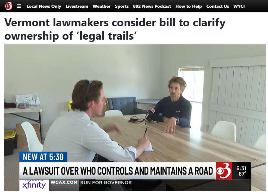 Nick speaks with WCAX’s Calvin Cutler about Legal Trails as part of their June 4th story Image: WCAX