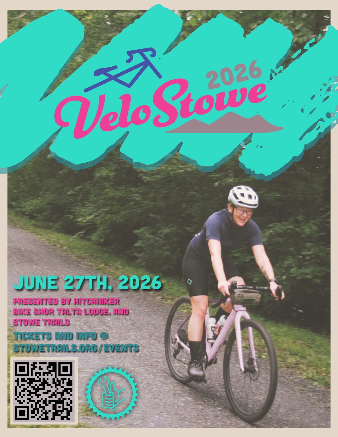 Save the date for Stowe Trails Partnership’s 2026 rendition of Velo Stowe! In partnership with Hitchhiker Bike Shop and Talta Lodge, this is a gravel event you won’t want to miss! Registration is open for the 2026 iteration of Velo Stowe. |