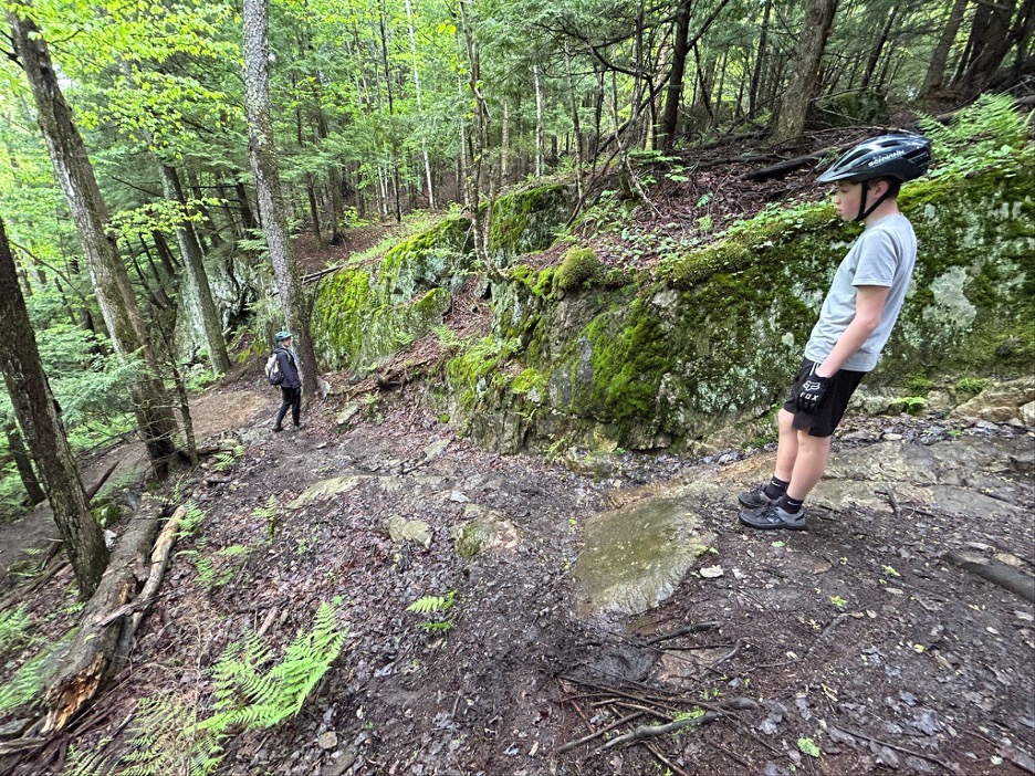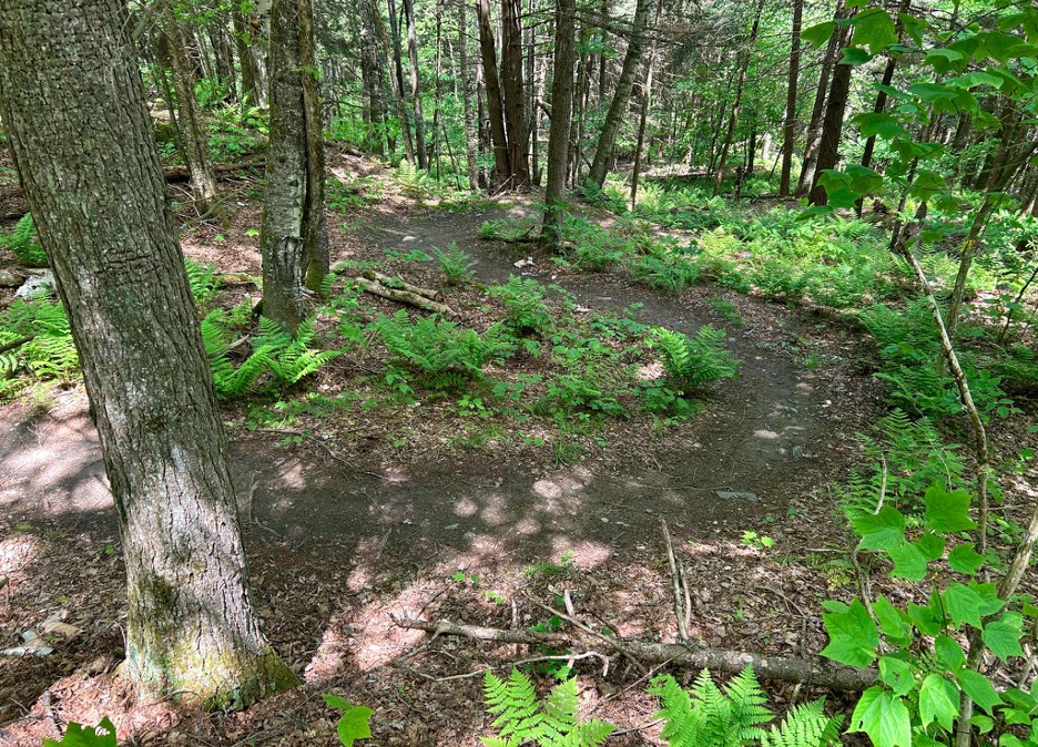 Some folks in Chittenden County are familiar with the Brewster River Mountain Bike Club’s main trail network in Pleasant Valley between Underhill and Cambridge. I don’t use Strava, and I imagine there are heat maps out there, but you won’t find any maps of the club’s Valley Trails on their Web site or Trailforks so these fantastic trails are not well known unless you know someone in the club or get some beta. I’ve ridden them in the past and for this challenge I’m trying to get to spots I haven’t ridden yet, which brought me to the Cricket Hill network in Hyde Park. This is a small but really fun network in the hills behind Lamoille Union School. There are two distinct zones on either side of the public parking area on Cricket Hill Road. To the north is the climb and descent route called Bermie Sanders. The climb is very mellow through gorgeous open woods. I met three local middle schoolers on top of the climb who took me on a walking tour of the rock features on the area’s test piece: Lancer’s Leap. Everything was a bit damp so I did a quick summit loop on The Lucky Toad then followed the kids down Bermie Sanders, which has lots of fun little rocky sections in addition to the eponymous berms. I left the kids and climbed back up to give Lancer’s Leap a go. This is a great skill building trail with some small rock rollers and technical features, kind of a miniature Perry Hill. Across the street from the parking area is Megan’s Loop which is an absolute blast with lots of fast long-radius corners and punchy little climbs. It took less than an hour to ride everything so this isn’t a travel destination but if you’re not far away it’s definitely worth a spin.