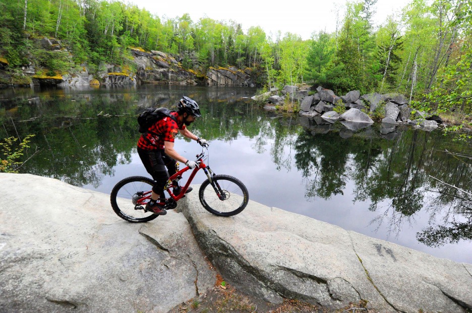 This unique riding area lies amongst active and abandoned granite quarries in Barre Town. I was a member of the trail crew here for years so am very familiar with the riding options. Unfortunately, much of the network lies on private land and some of the all-time classics, like Rollercoaster, Vortex, Fellowship Ring and Scream ’n Demon are no longer accessible due to logging or quarry work. Trails in the town forest are still open though and are a must for anyone looking for an unusual outing. Old quarries filled with water and immense grout piles dot the landscape and in the summer cool air flows from under the rock piles like a giant air conditioning unit. Not surprisingly, this is one of the rockier networks in the state. You won’t find a ton of relaxing flow trails but you will find plenty of challenge and thought provoking moves. For first timers to the area I like to take VAST to #6 Trail with a quick walk up Lawson’s Lookout for a great view of the area. Then VAST to Black Lagoon to Westside then head back on Locomotion to Boulder Dash. If you want more head up lower TNT and turn down Rambler which has some of the funnest riding in the network, including an optional elevated skinny. Though many of the old test pieces are gone, TNT, Capital Loop and Ledges have some of the most technical riding moves in the state and its fun to session the obstacles to find a solution.